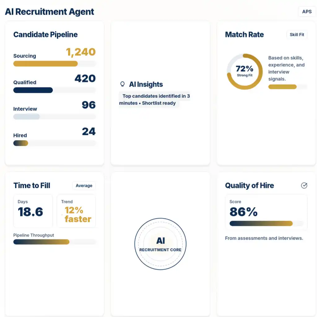 APS AI Recruitment helps you hire smarter, faster, and fairer, turning your hiring process into a competitive advantage.