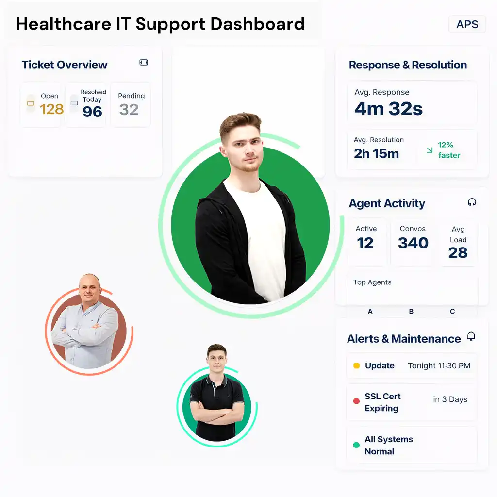 APS provides dedicated Healthcare IT & System Support Specialists who maintain, monitor, and support your digital healthcare infrastructure to ensure reliability, security, and continuity.