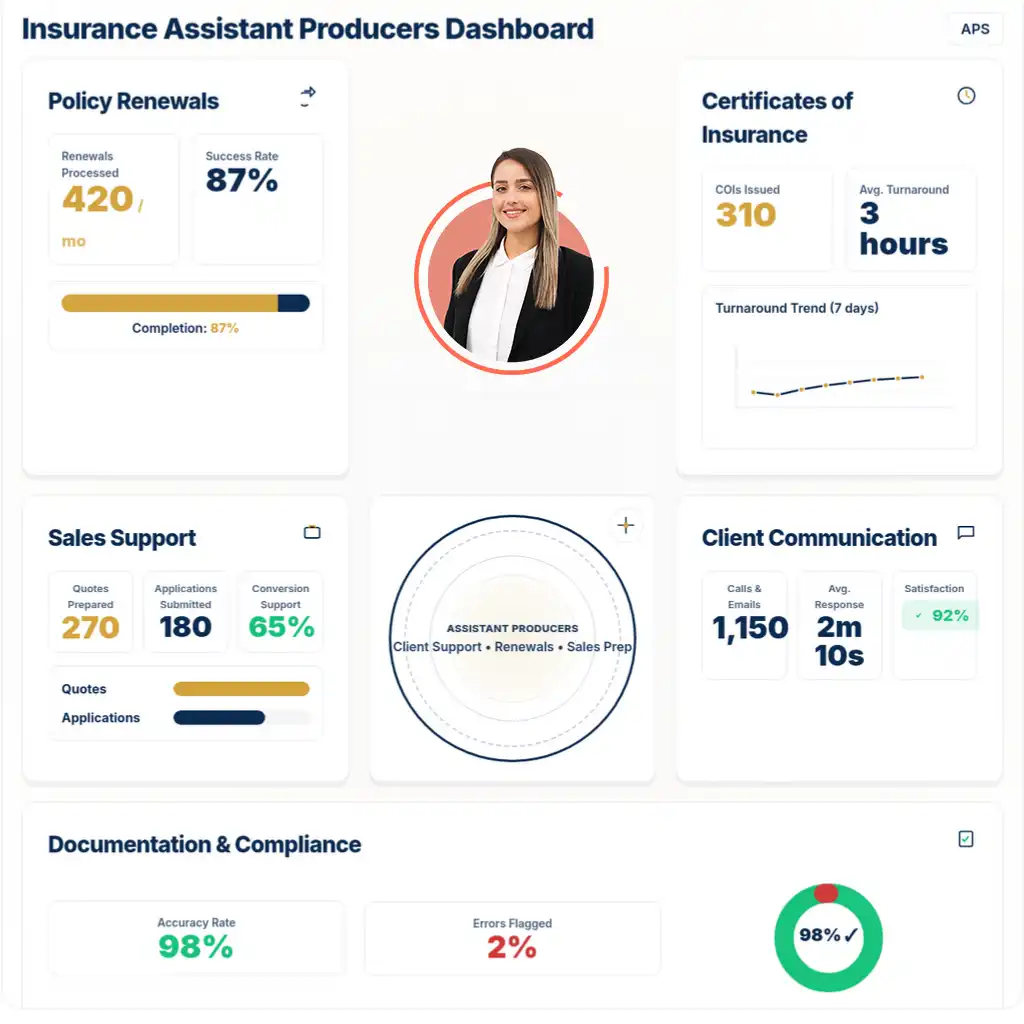 APS provides trained Assistant Producers who take on back-office responsibilities, ensuring your producers focus on revenue-generating sales while we handle the rest.