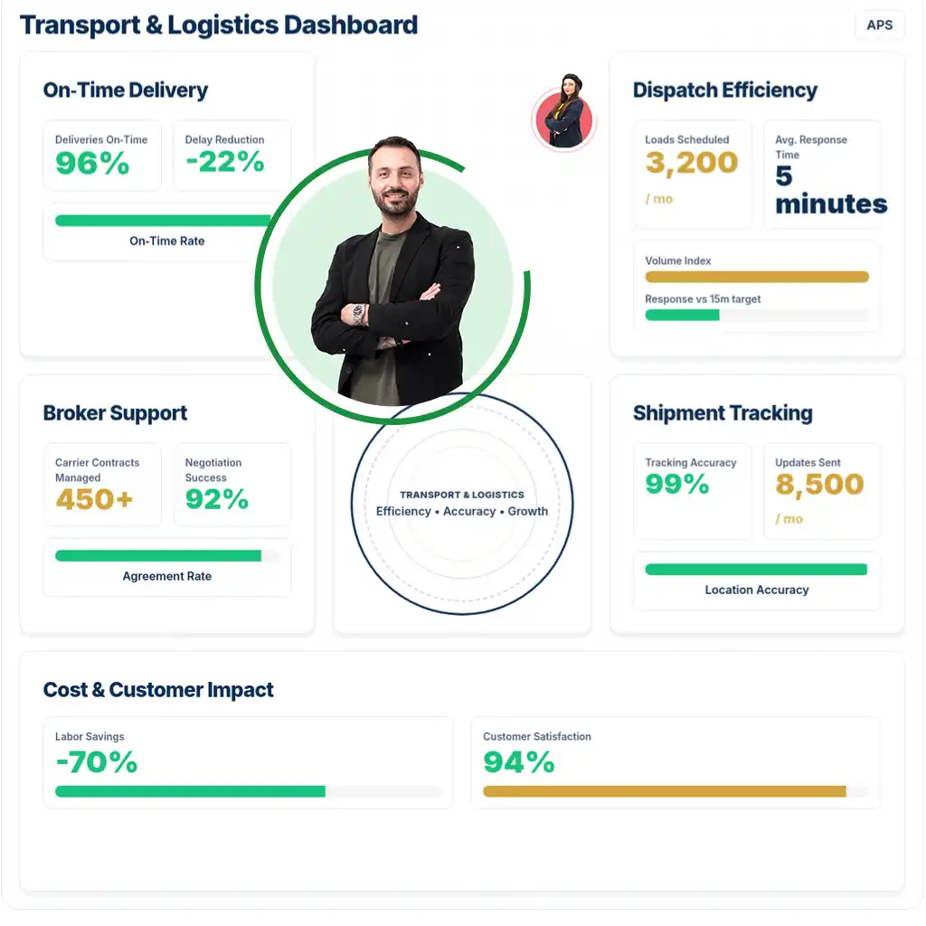 APS connects U.S. transport and logistics companies with dedicated European professionals who streamline operations, cut costs, and boost efficiency across the supply chain.